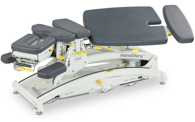 Manuthera® 242 mobiliserings- och manipulationsbänk bygger på unik patenterad teknik och är designad av finska experter. Bänken underlättar terapeutens arbete och säkerställer bästa möjliga diagnos och behandling för patienter. Manuthera 242 är en avancerad allt-i-ett-behandlingsbänk för krävande undersökning och behandling, och används av idrottsmassörer, naprapater, osteopater, fysioterapeuter, kiropraktorer med flera. Manuthera 242 lyfter behandlingen till en ny nivå och kan användas för en mängd olika behandlings- och diagnosmetoder tack vare sitt patenterade driftsystem med två synkroniserade motorer, unika multitraktionsfunktioner och en mängd andra egenskaper. Patienten kan mjukt och tyst placeras i terapeutiska och anatomiska positioner. Behandlingar kan utföras tredimensionellt med hjälp av bänkens funktioner för traktion, flexion, lateralflexion och rotation, och även med hjälp av gravitationen. Bänkens design, det dubbla motorsystemet och ramen med lager i alla rörliga delar förbättrar ergonomin och gör terapeutens arbete mindre belastande, vilket även ger bättre behandlingsresultat.