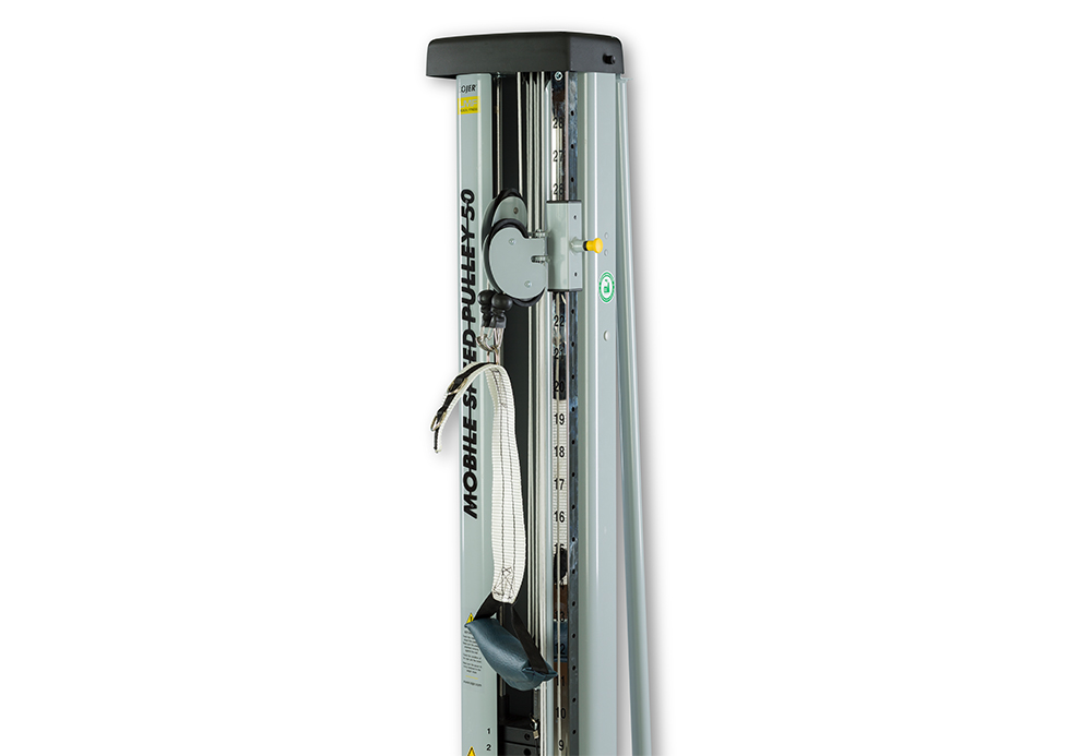 Den mobila låga dragapparaten Speed Pulley är ett bra alternativ när utrymmet är begränsat eller väggutrymmet inte kan användas för att fästa utrustning. Den är också ett utmärkt alternativ för situationer där behandling eller fysioterapi behöver utföras på olika avdelningar.
